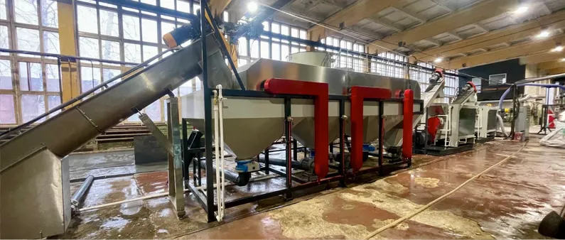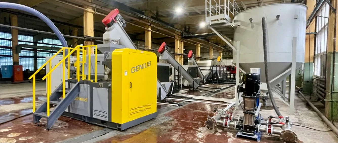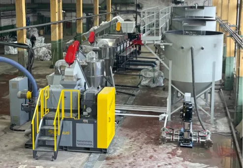 Входящее сырье проходит тщательную сортировку, а высокоэффективная мойка и двухкаскадный гранулятор позволяет получить качественный регранулят.